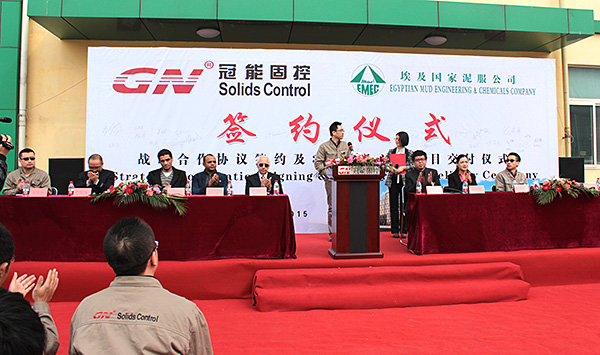 2015年3月12日,冠能固控與埃及國家泥服公司在中國北京冠能公司總部簽署戰(zhàn)略合作協(xié)議,為此冠能固控舉辦了盛大了簽約儀式,儀式也包括了一大批離心機(jī)的成功交付。