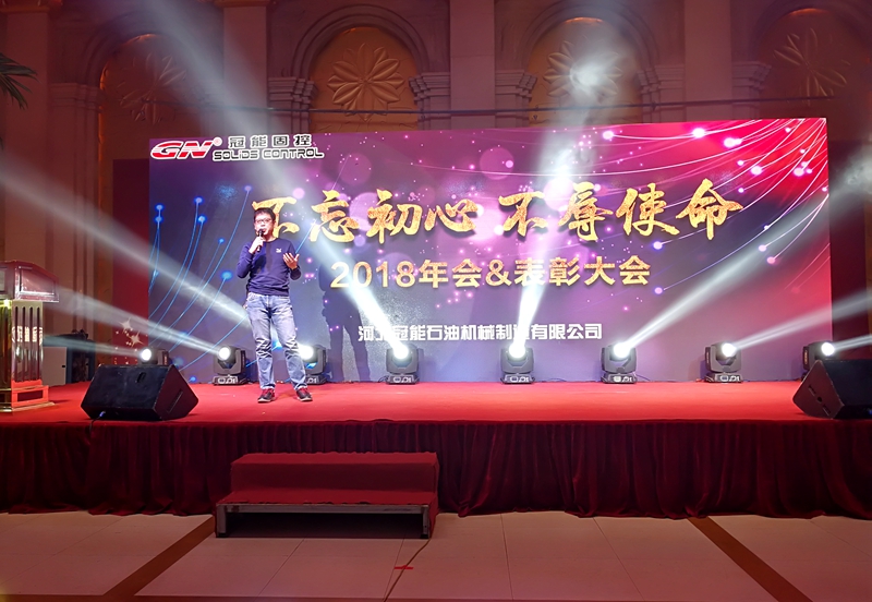 我們總經(jīng)理,周鵬先先生在年會致辭中說:“我們創(chuàng)立冠能固控的初心就是創(chuàng)造一個世界較好的品牌。經(jīng)過10年的發(fā)展,我們的品質(zhì)和品牌知名度已經(jīng)逐步獲得廣大客戶的認可。在國內(nèi)市場,我們已經(jīng)與國內(nèi)三桶油有了深入合作,也是國內(nèi)各大鉆機廠優(yōu)選配套供應(yīng)商。在國際市場,我們已經(jīng)遠銷世界多個國家和地區(qū),獲得了包括貝克休斯,埃及國家泥服,俄石油,美國客戶等的高度認可。在過去的2017年,宏觀市場并不好的情況下,冠能公司業(yè)績獲得了20%的增長?;?初心,我們不辱使命。當然,我們既要為自己取得的成績自豪,更要面向未來。為適應(yīng)未來的發(fā)展需要,公司已經(jīng)在唐山玉田新購買120畝土地,用于新工廠的建設(shè)。在新工廠,我們要打造智能化制造工廠,包括引進機器人,工業(yè)物聯(lián)網(wǎng)技術(shù),MES現(xiàn)場生產(chǎn)管理系統(tǒng)。通過先進的制造技術(shù),去確保產(chǎn)品品質(zhì),提高生產(chǎn)效率。為創(chuàng)建名族品牌貢獻一份力量。”