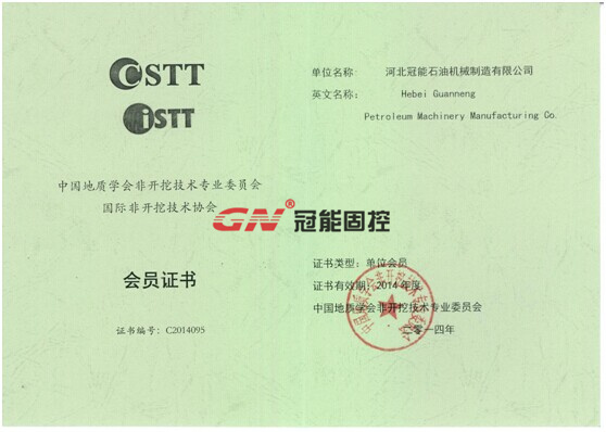 熱烈祝賀河北冠能成功加入CSTT會員,CSTT-中國地質(zhì)學會非開挖技術專業(yè)委員會正式成立于1998年,同年加盟國際非開挖技術協(xié)會(ISTT),是我國成為26個國際會員國之一。目前協(xié)會掛靠于國土資源部,并得到科技部和建設部的大力支持。中國地質(zhì)學會非開挖技術專業(yè)委是我國在全國開展非開挖技術活動的合法民間組織,并相繼協(xié)助成立了北京、上海和廣東等地方性非開挖技術協(xié)會。